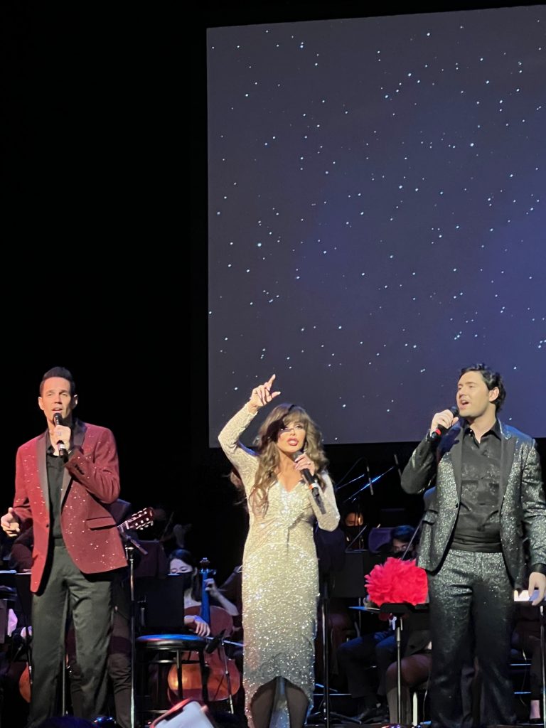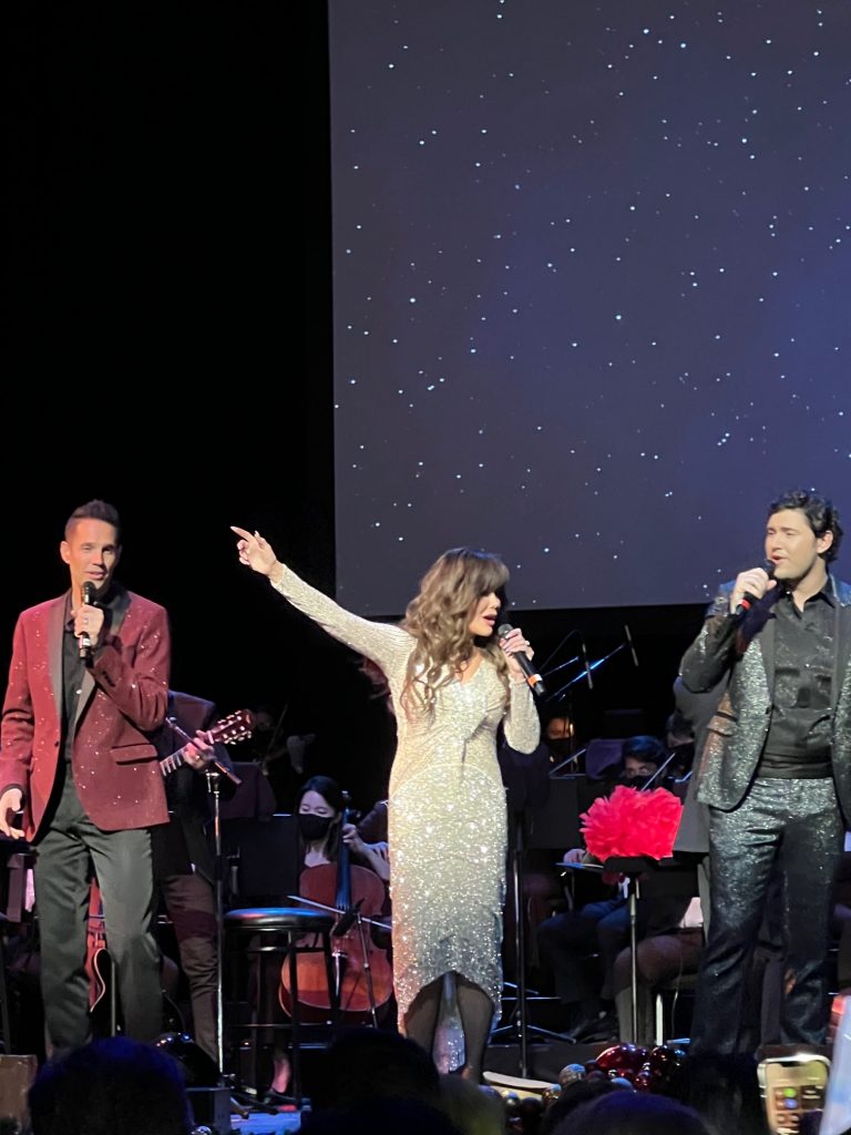 Also joining her on stage was multilingual/classical singer Daniel Emmet, a finalist on Season 13 of NBC’s America’s Got Talent, whose powerful opera vocals boomed over the theater in duets and solos. The three sang a couple of fun holiday medleys together, and finished with a powerful “Silent Night.”