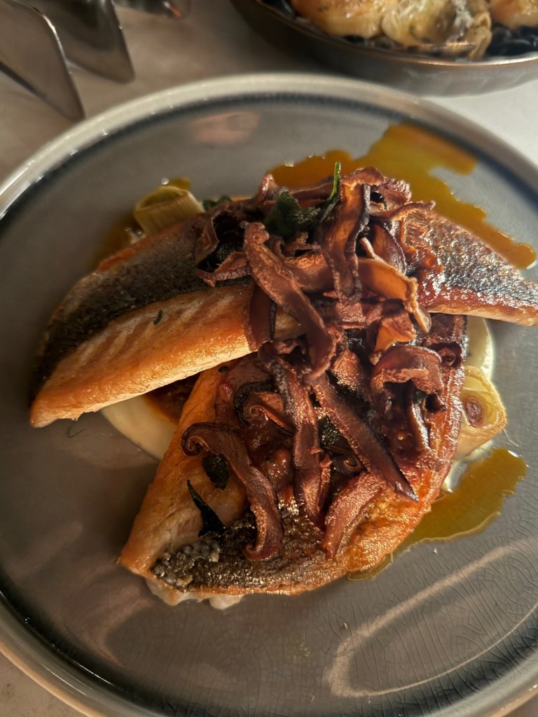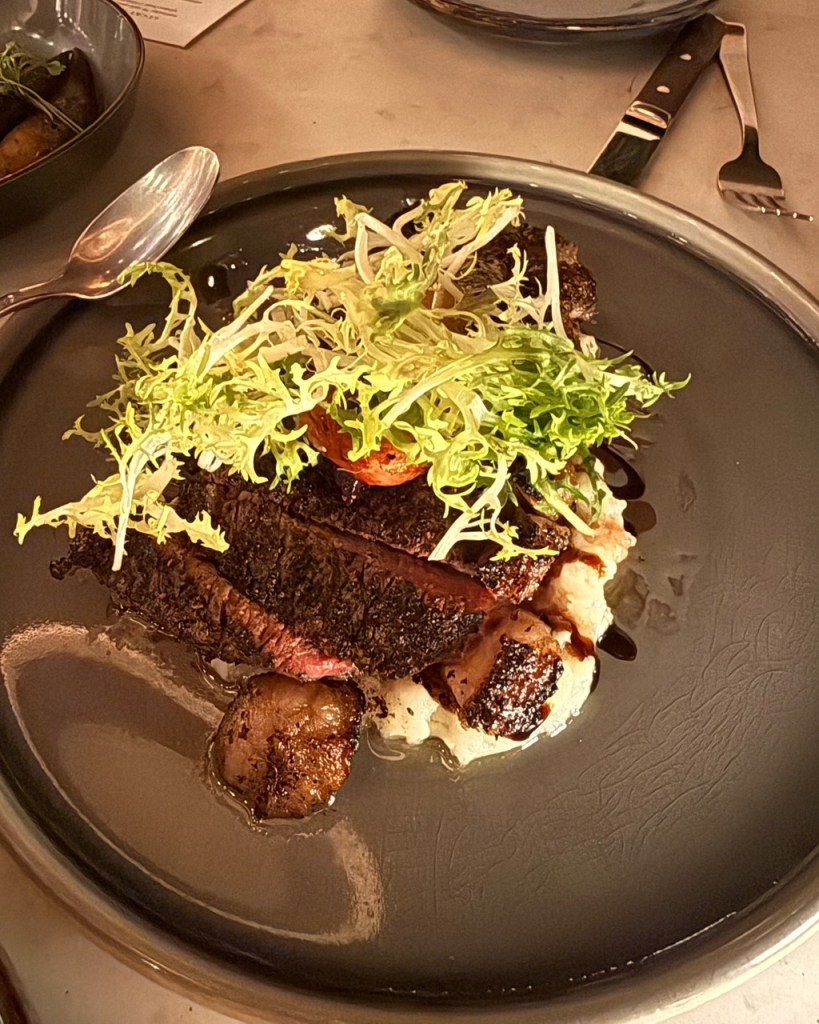 Among the entrees, the Grilled Maitake shines as a hidden gem. The smoked whipped feta, Fresno vinaigrette, and bonito flakes complement the earthy mushrooms, making it a dish that’s as unique as it is flavorful. The Branzino, served with guajillo piperade, celeriac soubise, and confit leek, balances delicate textures with bold flavors. For pasta lovers, the Seafood Orecchiette impresses with house-made charcoal-infused pasta, prawns, scallops, clams, and calamari in a lobster bisque base.