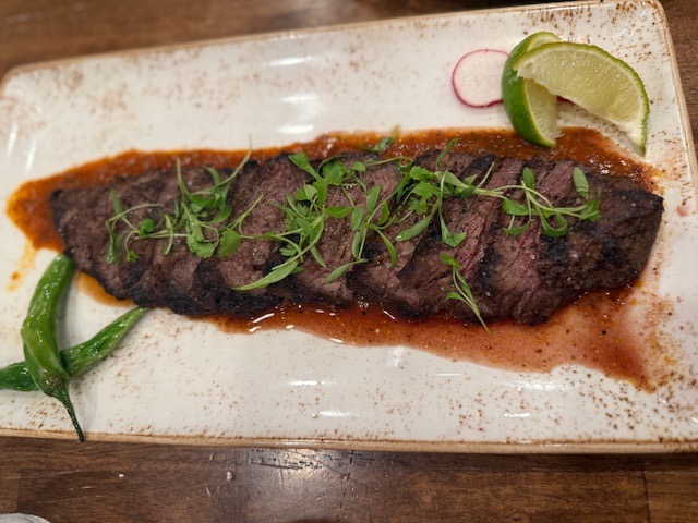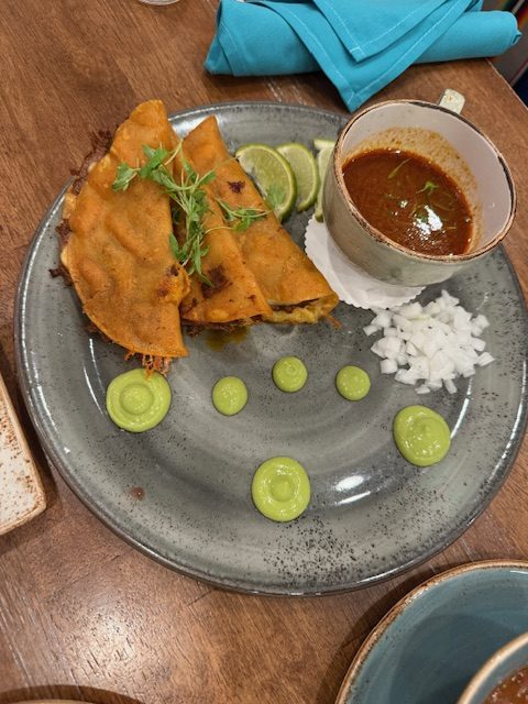 For the main course, the carne asada—tender skirt steak drizzled with salsa ranchera and topped with cotija—delivered on all fronts. The quesabirria tacos, with their crispy cheese crust, succulent shredded birria, and rich consommé, elevated the meal, leaving a lasting impression.