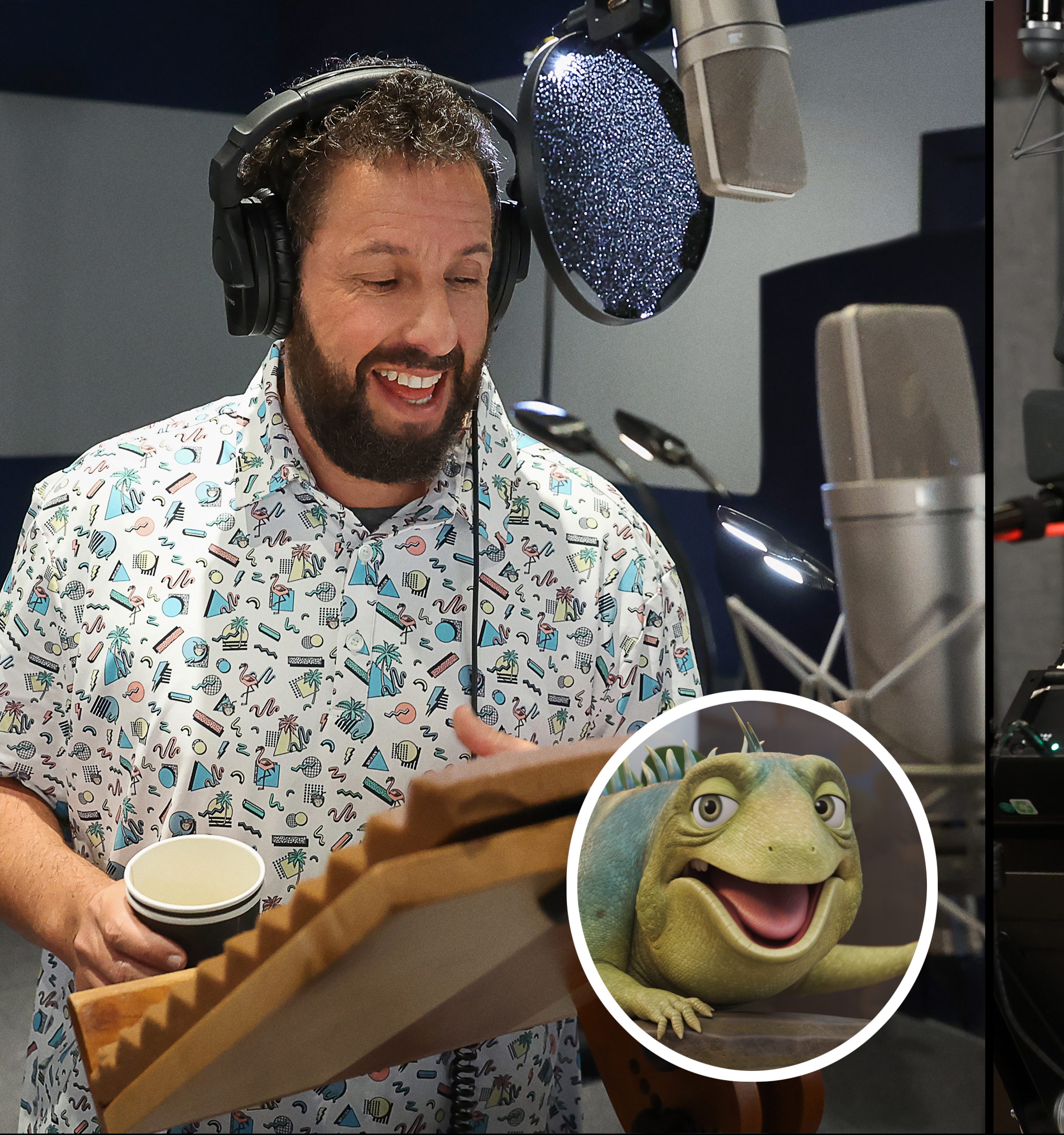 LEO. BTS - Adam Sandler performing the voice of Leo. Cr. Jesse Grant/Netflix © 2023.